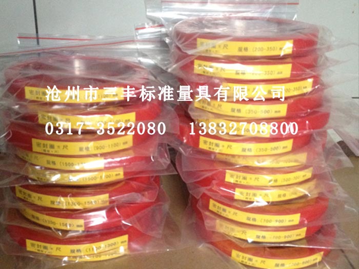 結(jié)構(gòu):密封圈派尺僅由一條彈性鋼帶構(gòu)成,其兩端分別刻有主、付尺,主尺_(dá)小分度值為0.5mm,付尺_(dá)小分度值為0.05mm。